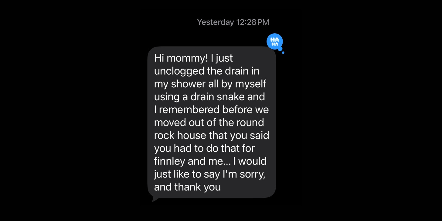 We can tell our kids that little problems grow when we ignore them. We can explain cause and effect. We can mention maintenance and give lectures on learning to do unpleasant things before they become disgusting. Still, none of that carries quite the same force as standing ankle-deep in shower water holding a drain snake and realizing, with sudden clarity, that your mother wasn’t making it up. She was responding to a real problem long before it became real to you.